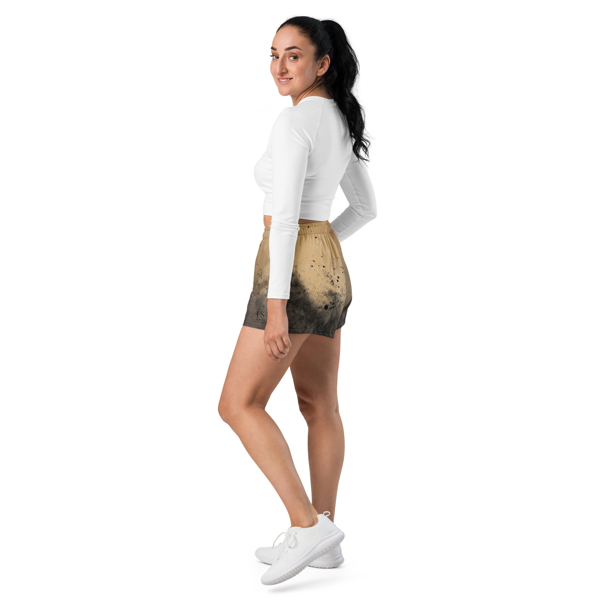 • Design: Gradient gold-to-black fade with organic splatter effect and minimalist black LS logo on front.