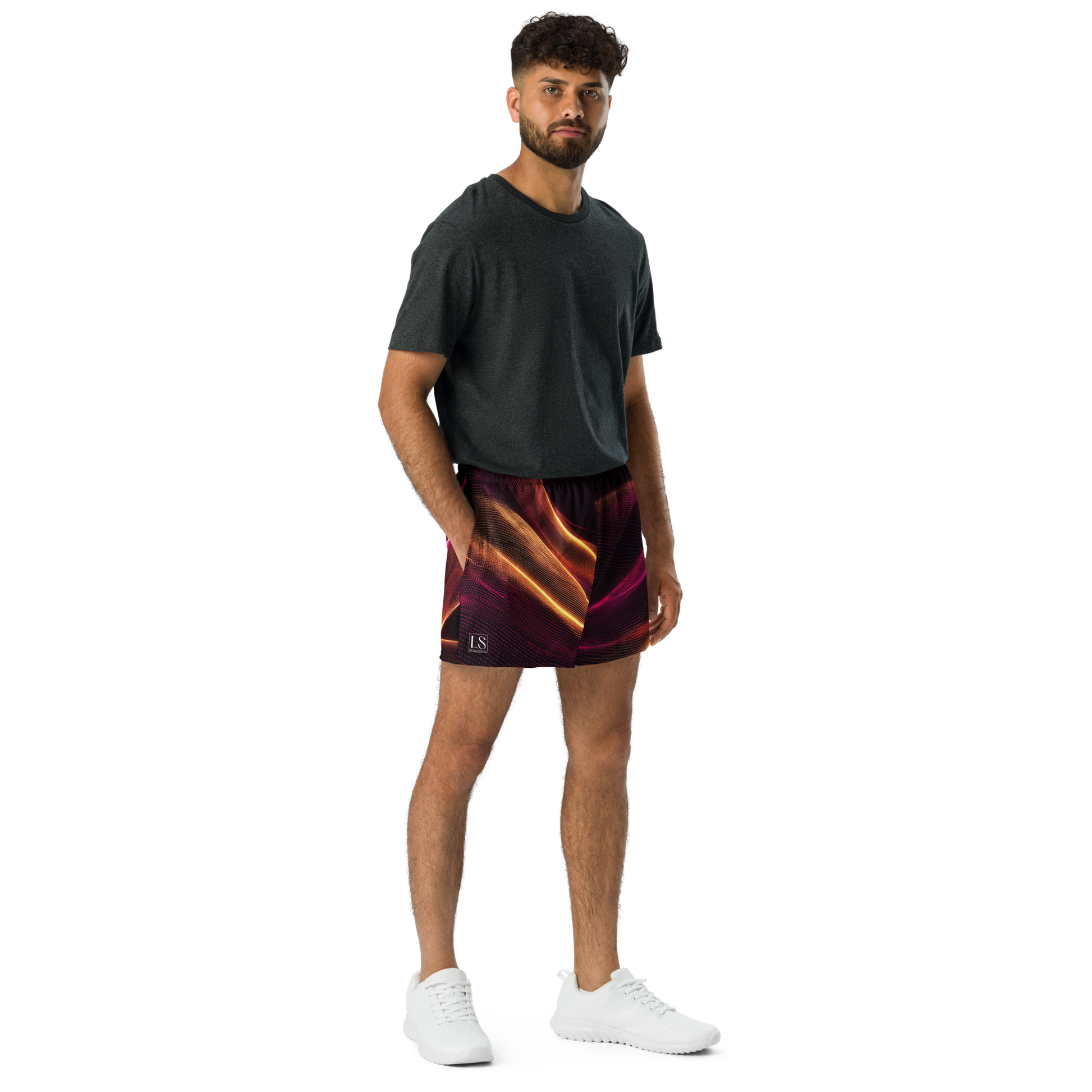 • Design: Flowing magenta and gold neon pulse lines across black, accented with a white LS logo on the front right leg