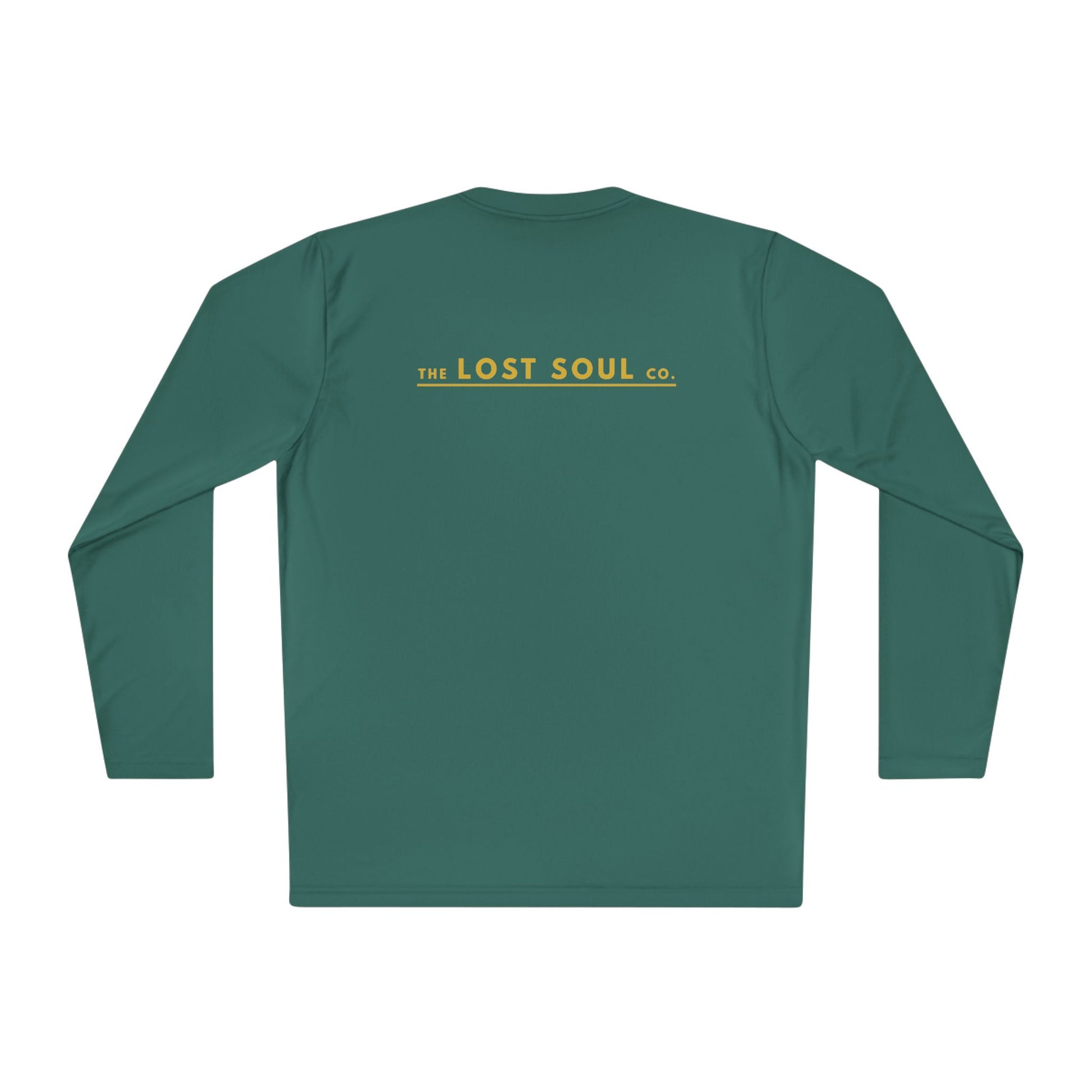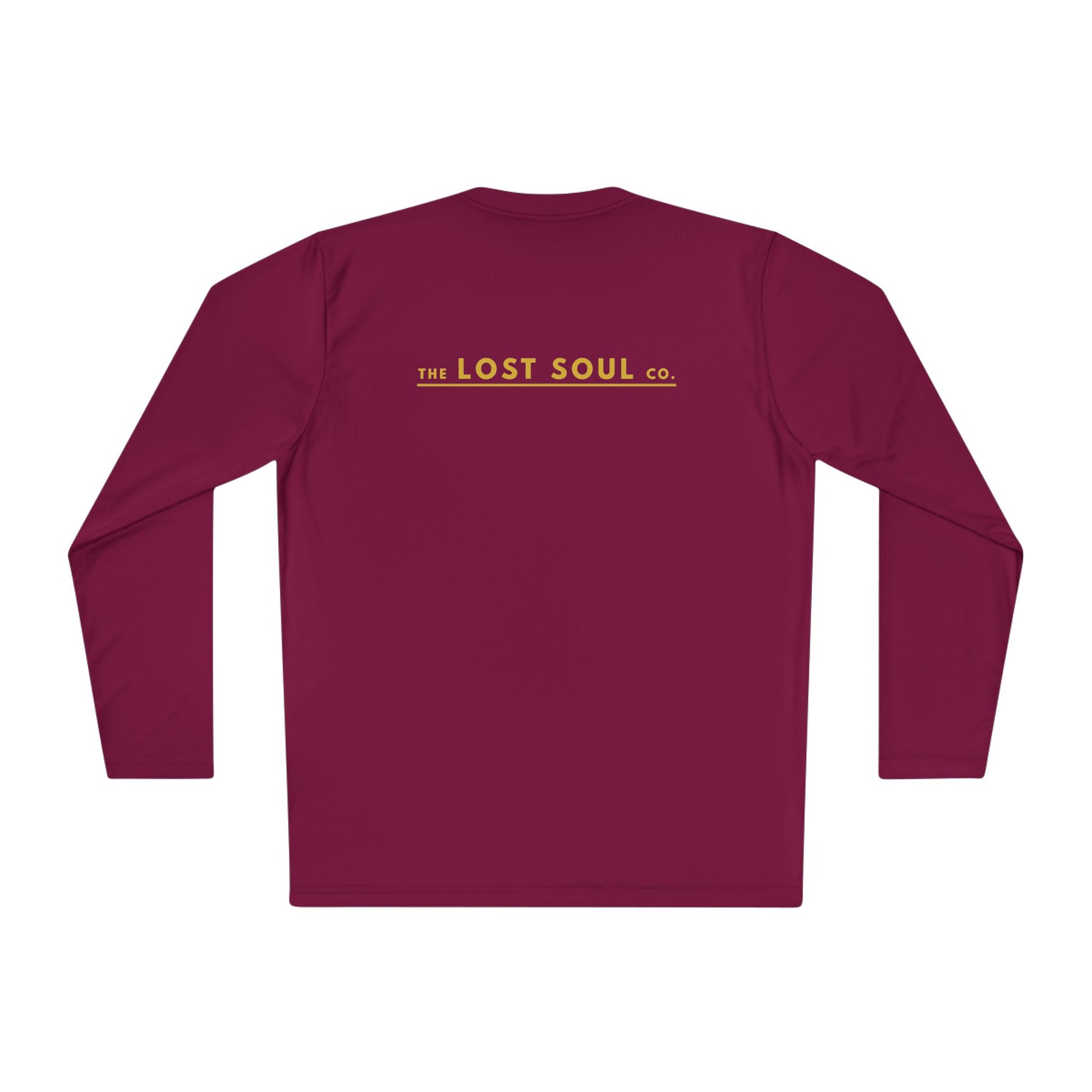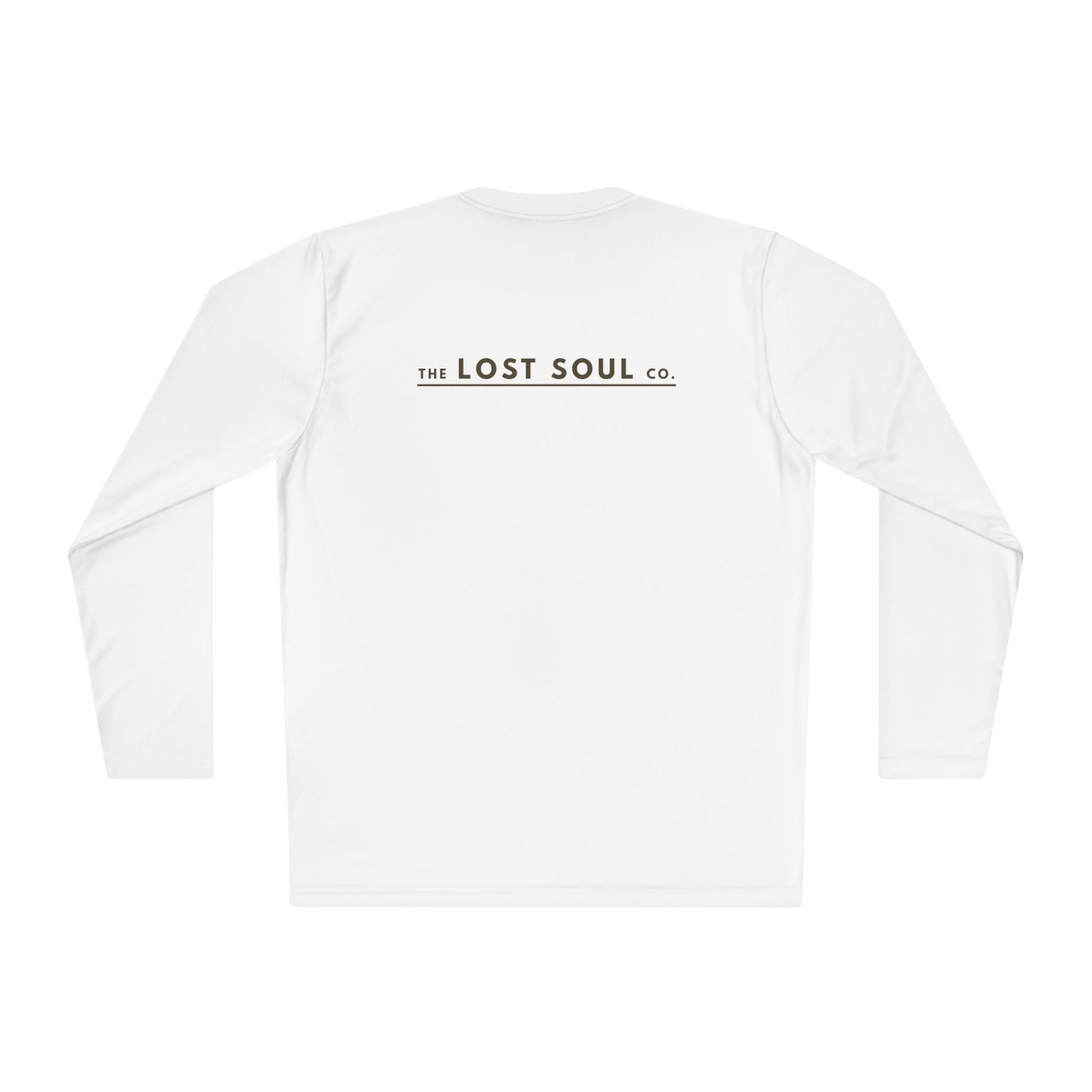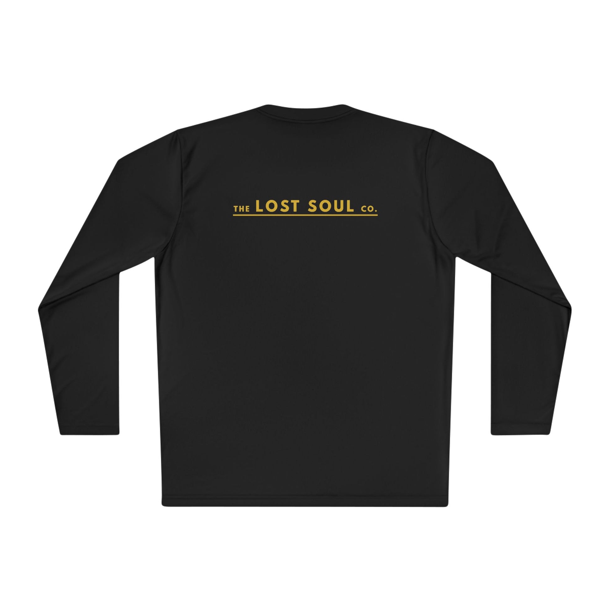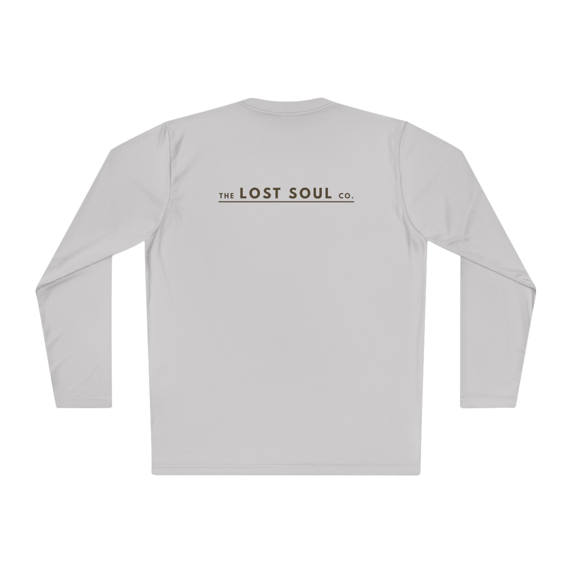 A centered logo anchors the front, while the horizontal Lost Soul wordmark runs clean across the upper back — balanced, minimal, and intentional.